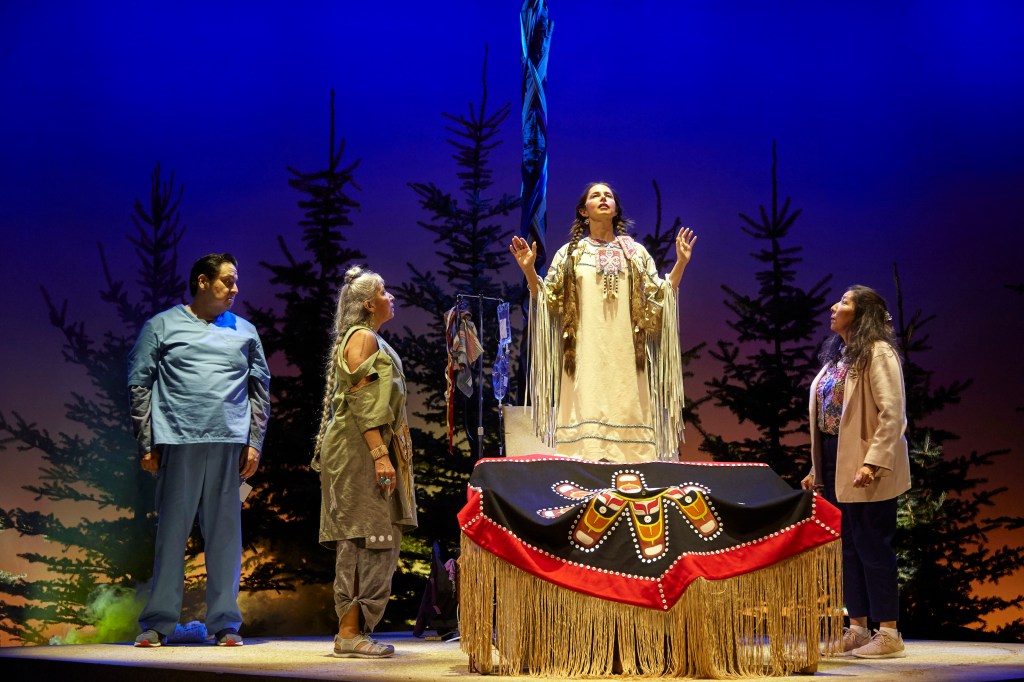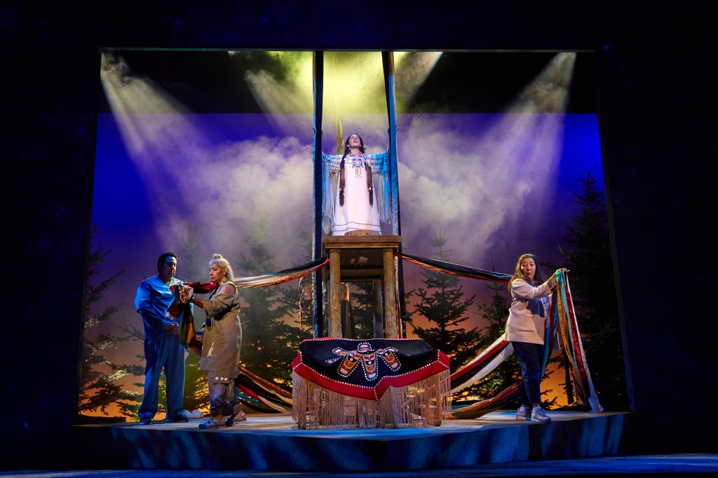 The creative team includes Andy Moro (set & projection design), Jeff Chief (costume design), Patrick Beagan (lighting design), Pura Fé (original music and vocals), Deanna H. Choi (sound design), Jenna Turk (dramaturg), Jane MacFarlane (vocal coach), Marion Lerat (Elder-in-Residence), Ruby Dawn Eustaquio (Stage Manager), and Sang-Sang Lee (Assistant Stage Manager). Our Theatre Calgary Mentors program participant (set & projections) is Imajyn Cardinal.