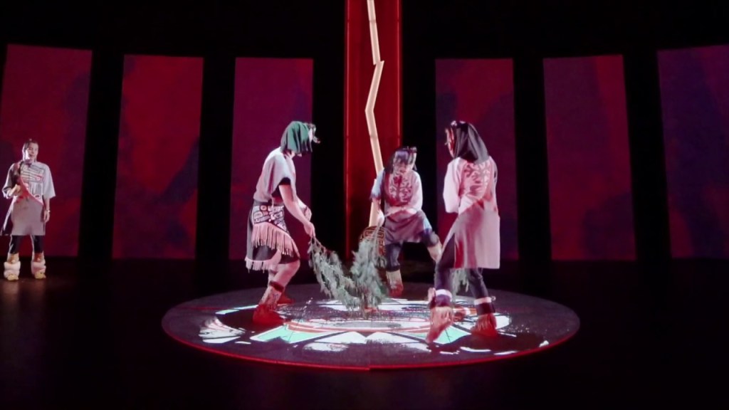 In order for this work to reach its transformative potential, it is necessary to revolutionize how we have learned to work within and claim space. Through multimedia elements, this production balances the performance space by adding contemporary reflections of Indigenous identity, immersing audiences in a narrative that illustrates moments of connection, understanding, and renewal.
