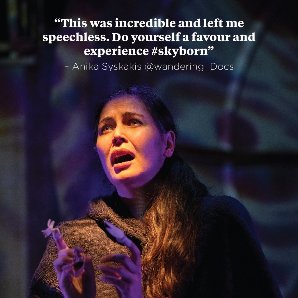 Skyborn is imaginatively constructed and fiercely poignant. It introduces never-before-seen Musqueam/Sto:lo visual storytelling and animation, as well as inter-Indigenous sound and puppetry, but at its heart is the simple, irreducible force of human presence: Sparrow is a natural performer, endowed with grace and magnetism. This work is her gesture of liberation.
